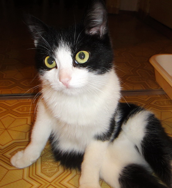 Муся-девочка 4-х месяцев. Простая кошечка, но очень хорошенькая. Она очень добродушная и спокойная, кушает абсолютно все, аккуратненькая. Очень любит тепло, греет свою поломанную в прошлом лапку возле батареи.