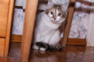Кошечке 4 месяца. Зовут Милочка. Очень спокойная, добрая малышка. Еще немного боязливая, живет у меня около месяца. Родилась во дворе детского садика. Мама красавица и умница. Было трое котяток. Осталась она одна. Очень хочет жить дома. Ест всё. Ходит в лоточек с первого дня. Ненавязчивая, но всегда рядом.
