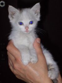 Этот котенок был назван нами Лакки что означает удача, счастье, ведь он действительно счастливый котенок. Проезжая по улице Королева я неожиданно и совершенно случайно увидела крохотного белого котенка который сидел посреди дороги. Бешеное движение фуры, грузовики, автобусы проезжали и просто чудом оставляли его живым. Я не смогла остаться равнодушной и вернулась назад, надеясь на то что он останется жив. Подъехав поближе я увидела чудо, котенок прижавшись к дороге судорожно дрожит , но борется за свою жизнь. Сейчас это прелестное создание живет у меня в коридоре, так как домой я не могу его взять, потому что у меня собака. Эта кошечка действительно несет теплоту, радость, счастье и уют в дом. Если Вы хотите привлечь в дом счастье , то эта милая кошечка для Вас!!!