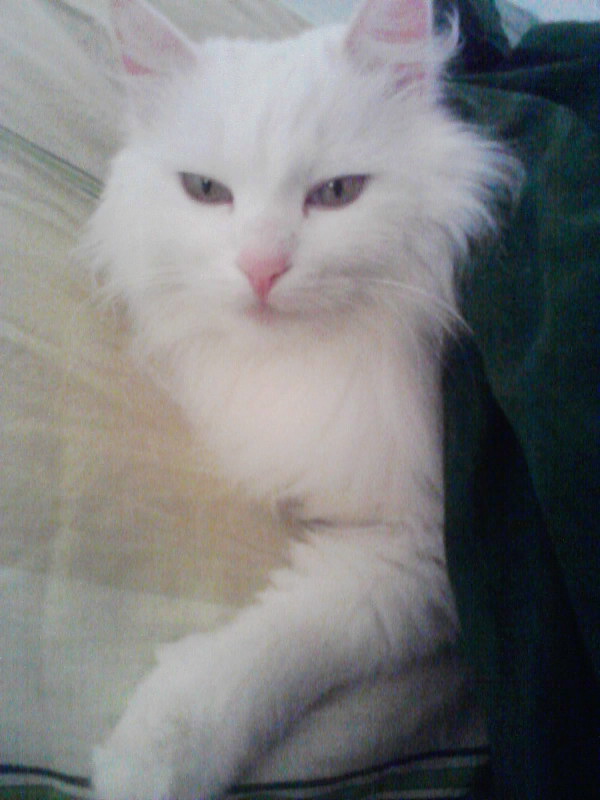 Соня — белый вальяжный пушистик уехала в свой дом